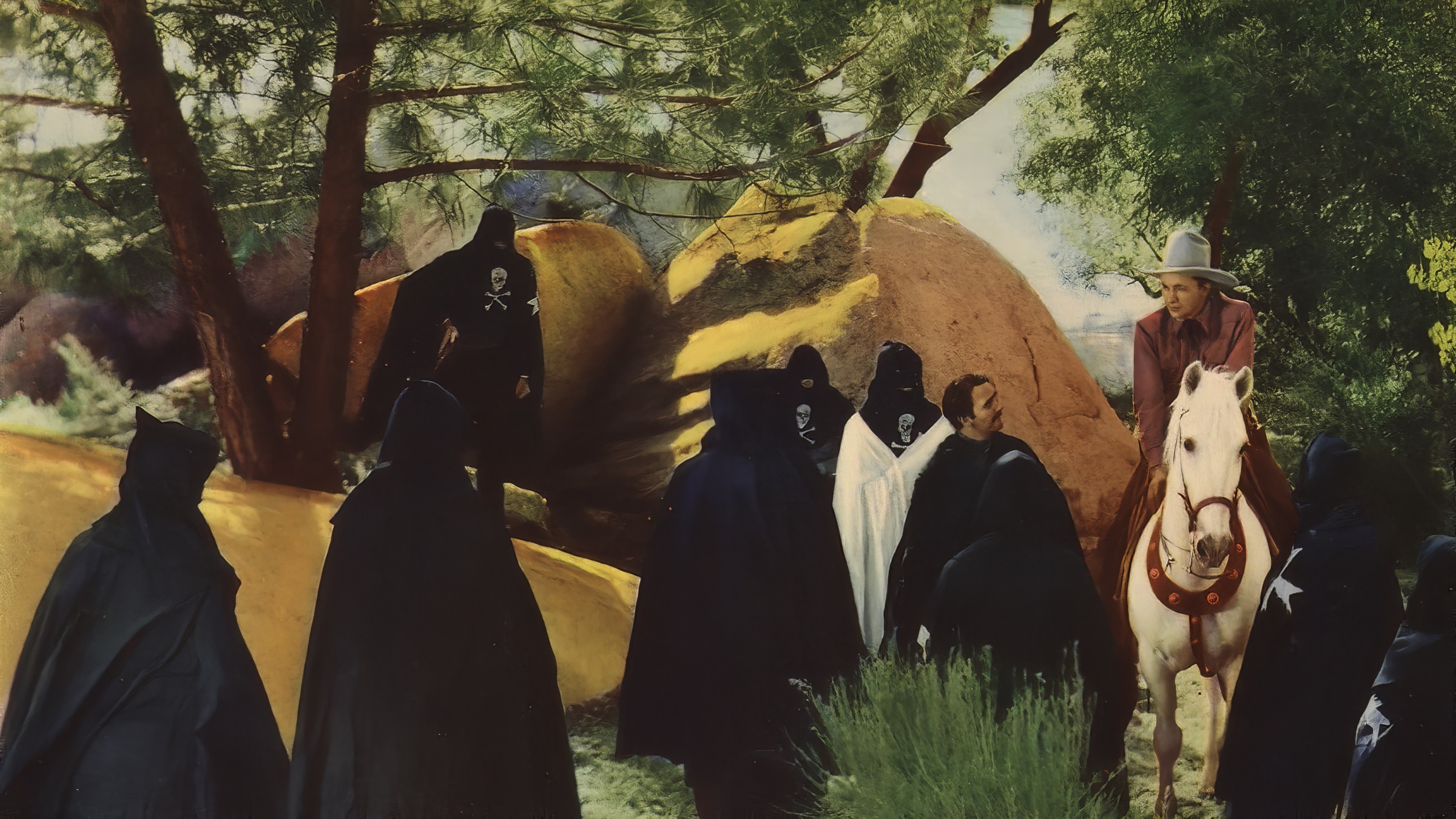 När den orädde Tex ställs mot ett gäng maskerade banditer tar han en djärv risk för att stoppa dem. Efter att ha fällt en av ryttarna använder han förklädnaden för att infiltrera ligan inifrån. Men spelet är farligt – minsta misstag kan avslöja honom. Samtidigt jagas han av lagen och grips av sheriffen som tror att han själv är en av de kriminella – och plötsligt står allt på spel.